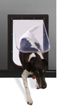 Petway pet doors are made of UV stabilised plastic. They come in three standard sizes – small, medium and large. You can choose from six colours: black, white, stone beige, primrose, brown and bronze.